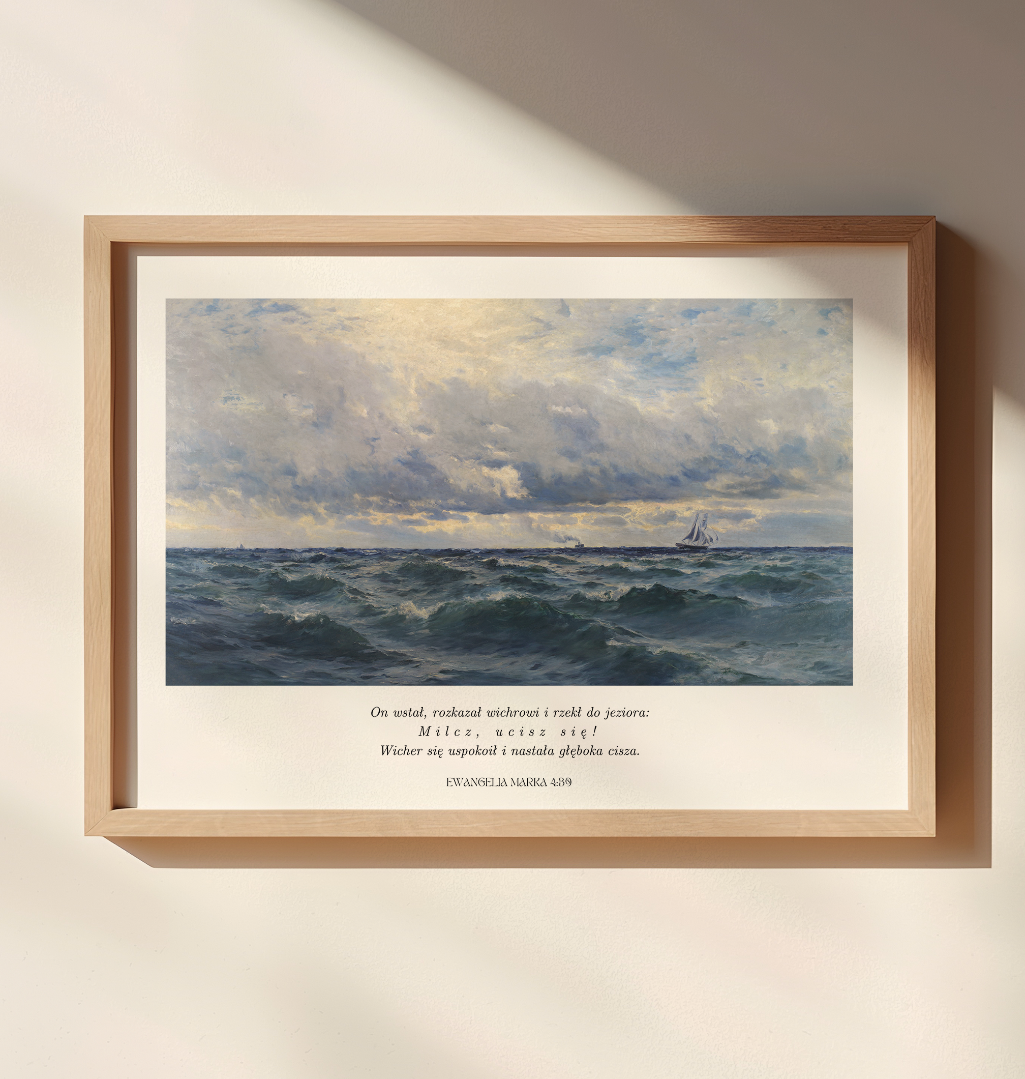 Plakat inspirowany fragmentem z Ewangelii Marka 4:35-41 (Biblia Tysiąclecia – wyd. Pallottinum).