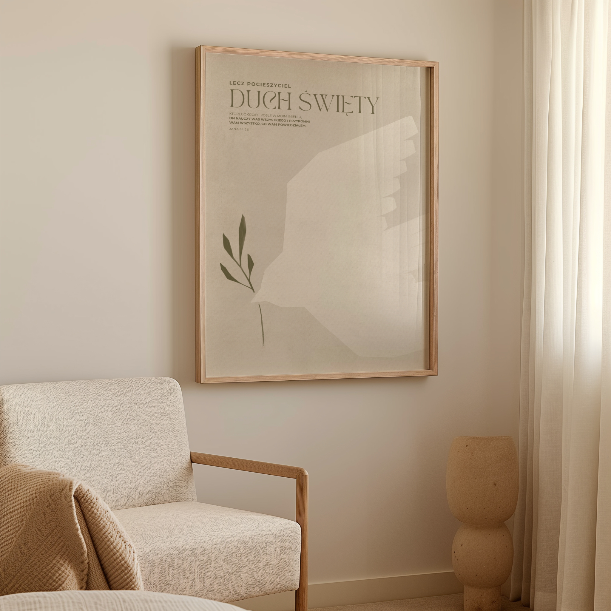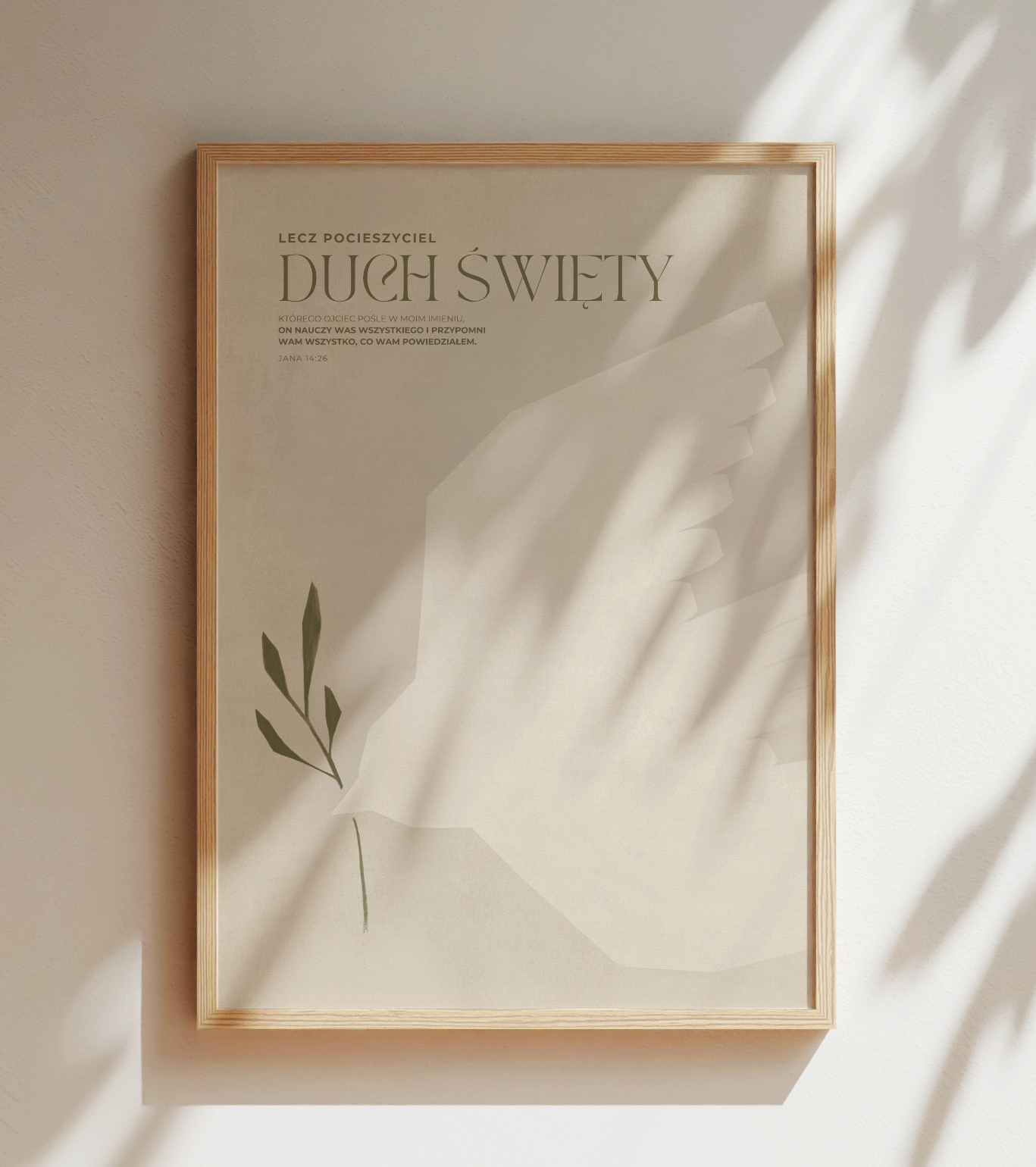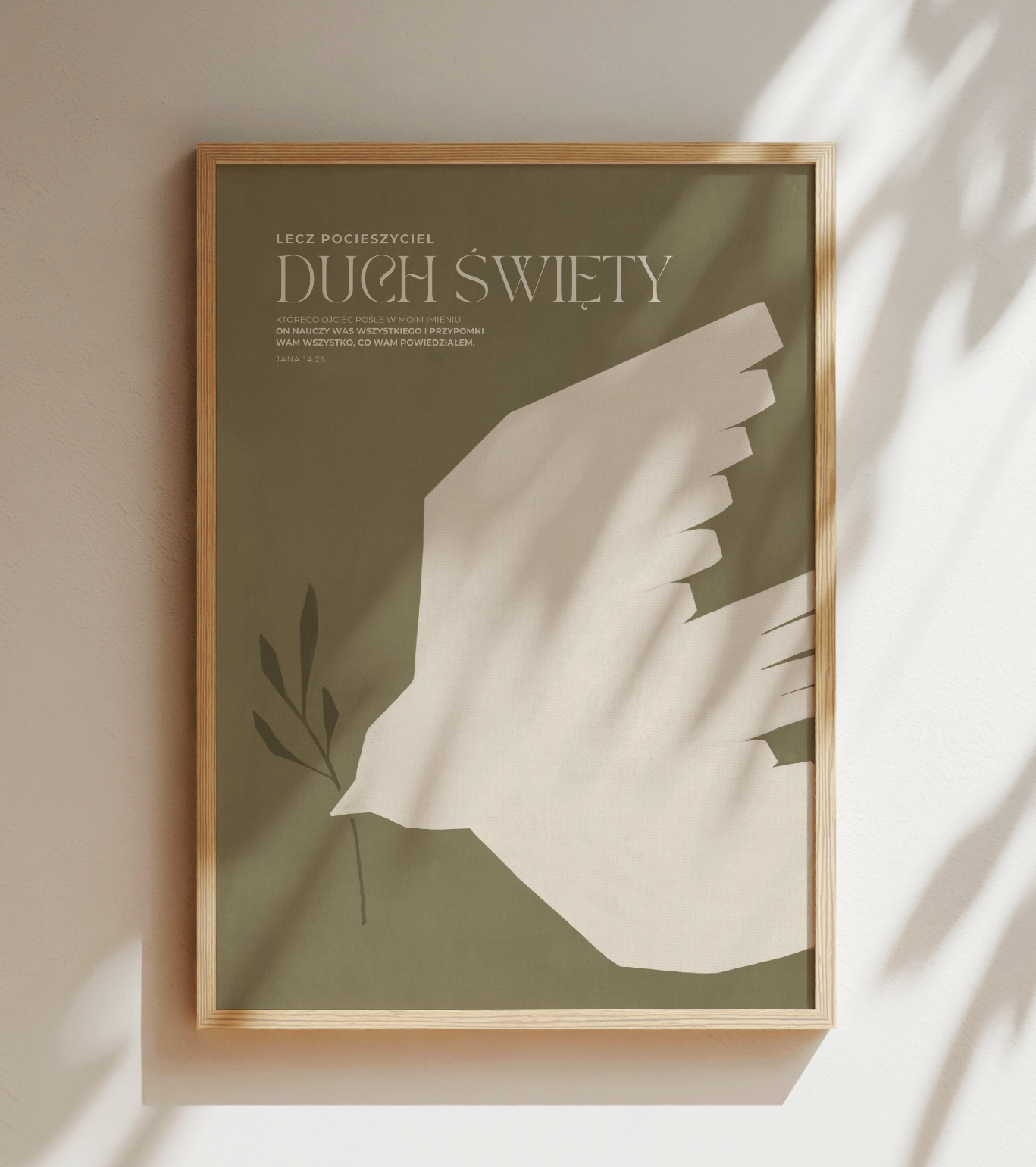 Plakat inspirowany fragmentem z Ewangelii Jana 14:26 (UBG).