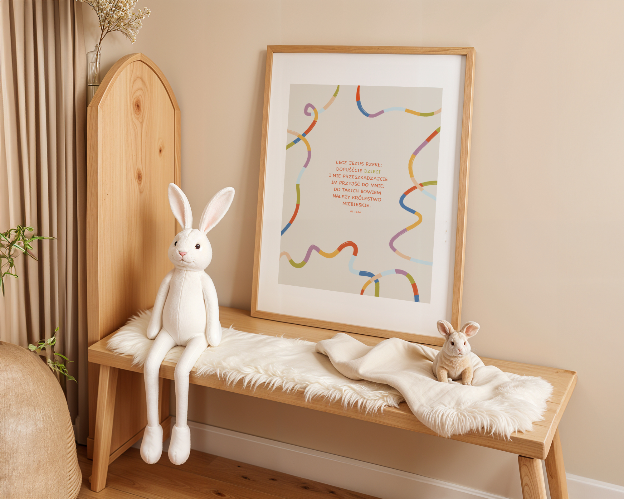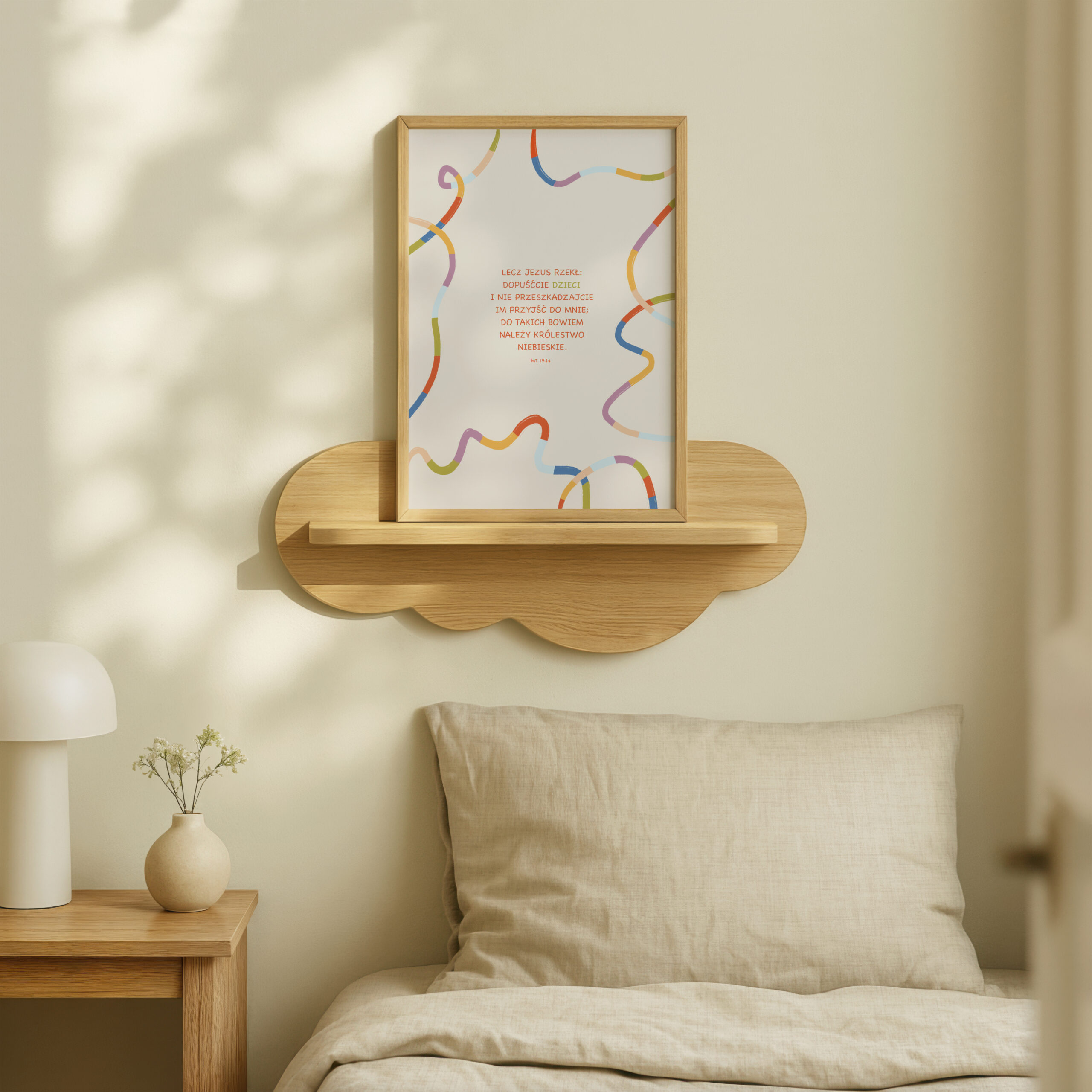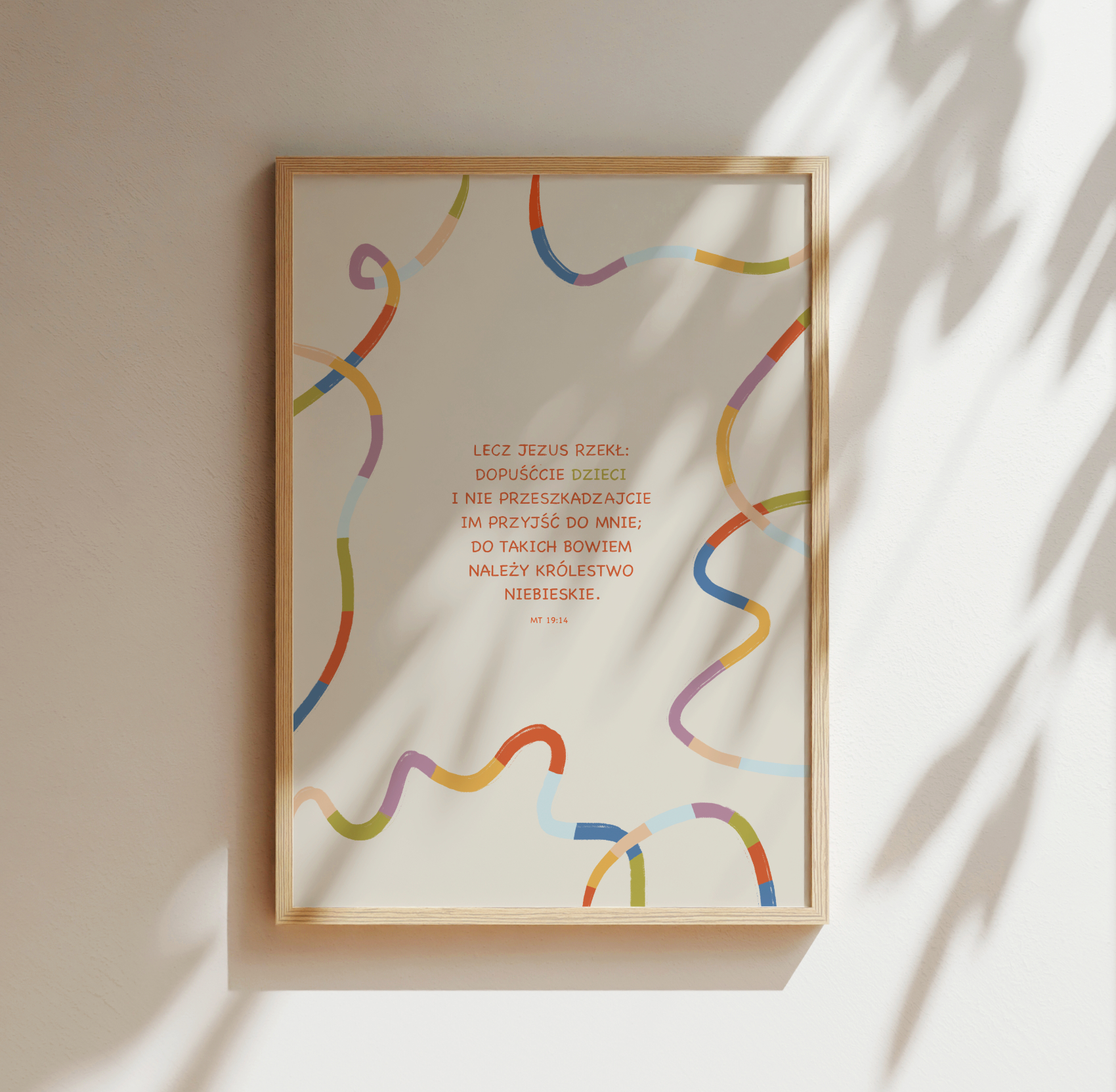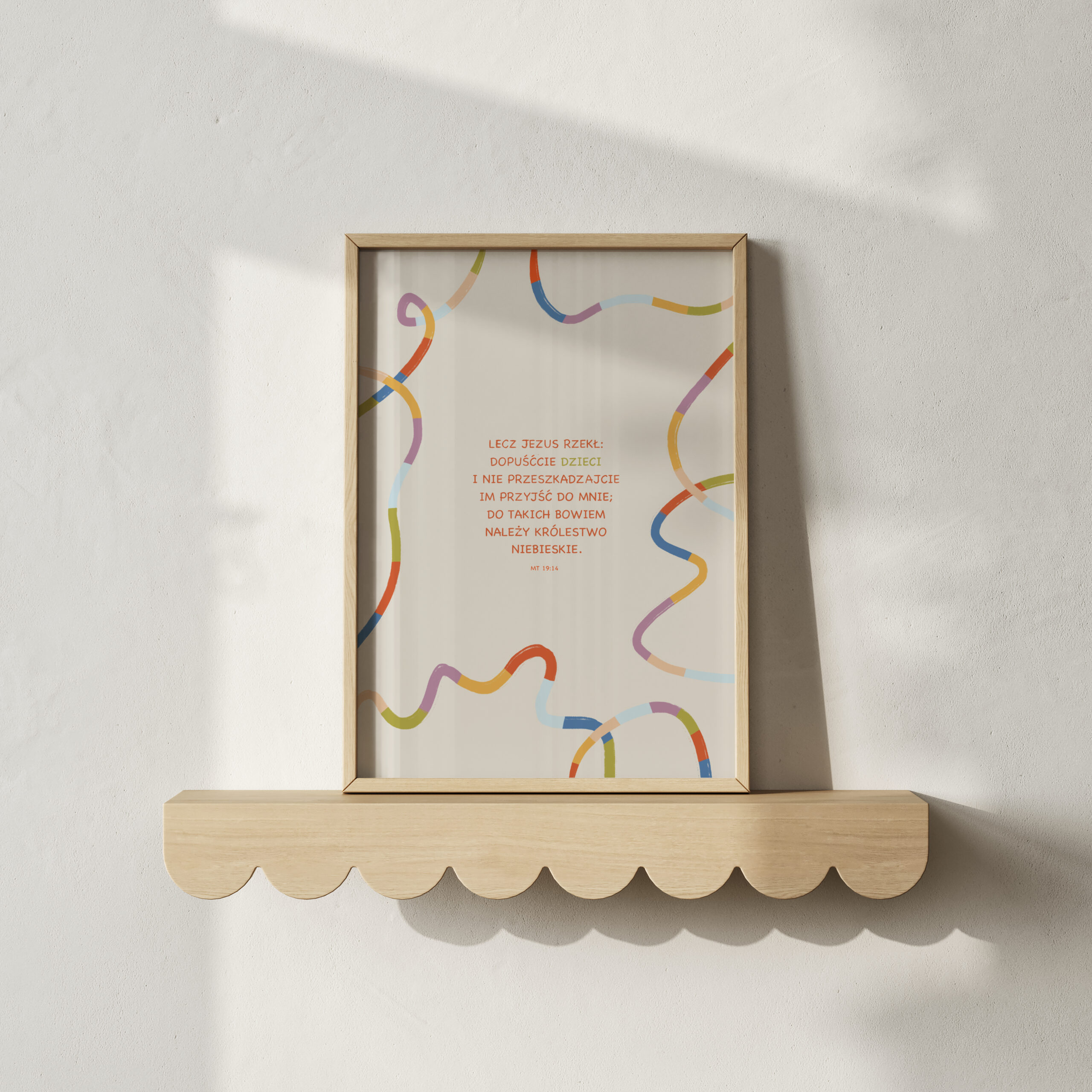 Plakat inspirowany cytatem z Ewangelii Mateusza 19:14 (Biblia Tysiąclecia).