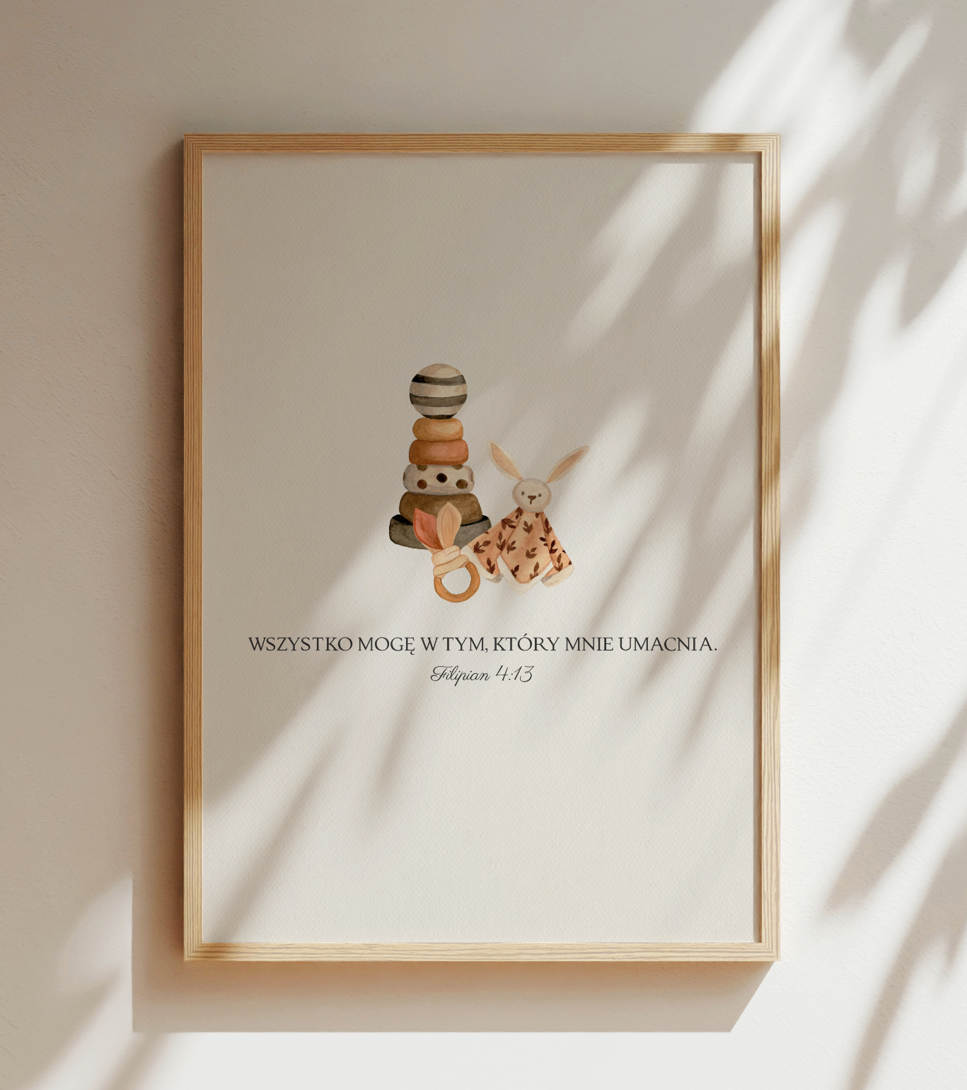 Plakat inspirowany fragmentem z Filipian 4:13 (Biblia Tysiąclecia).